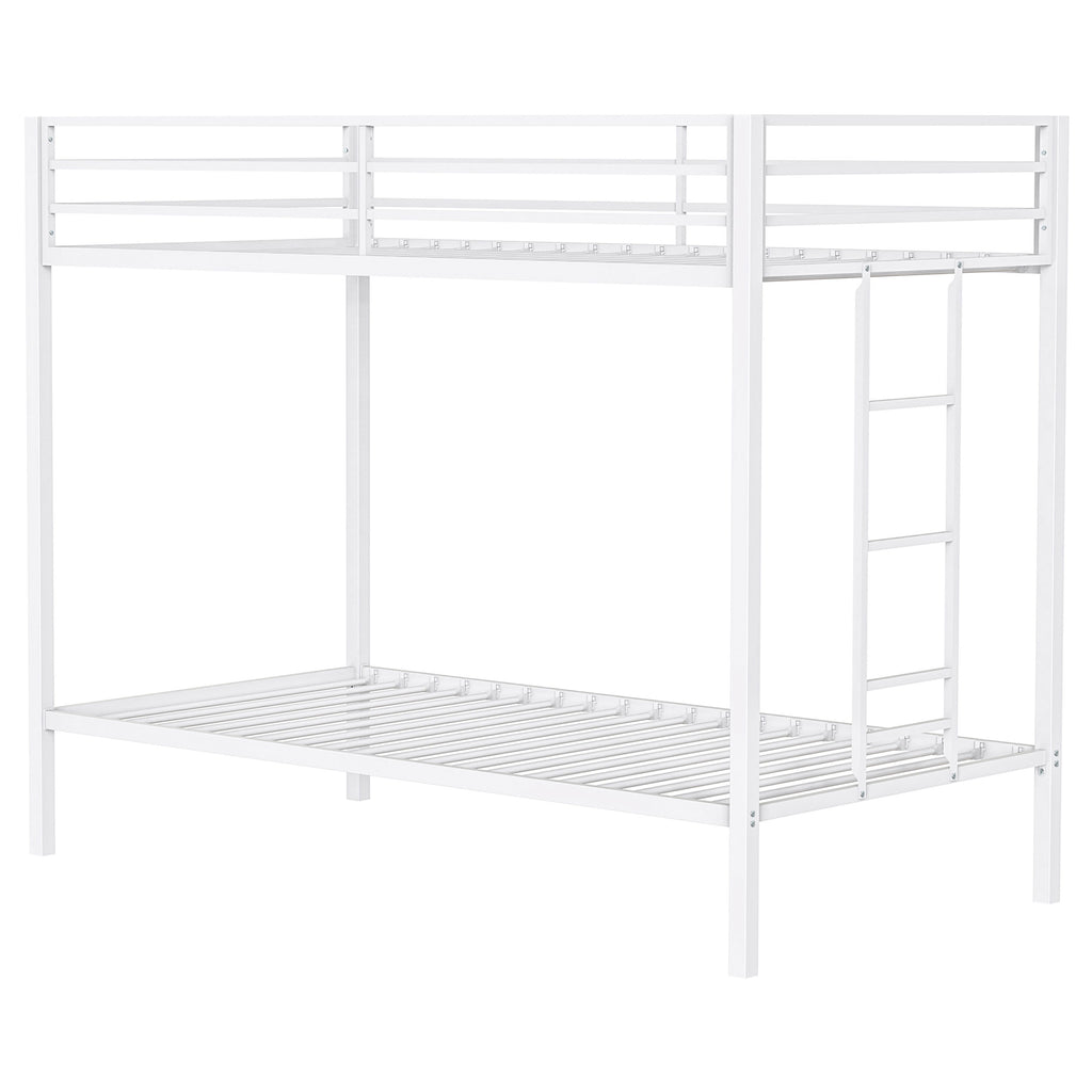 Built for flexibility and durability, this modern metal bunk bed blends clean lines with a space-saving design. A secured upper guardrail and integrated ladder support safe sleeping arrangements for shared rooms or compact spaces. Crafted from steel, the frame delivers lasting strength and sleek utility. Perfect for maximizing sleeping capacity in kids’ bedrooms, guest quarters, or multi-use rooms. Key Features: • Twin over twin bunk bed in black metal offers a compact, streamlined vertical frame design • Clean lines and slim profile maximize sleeping space in shared or small bedrooms • Integrated vertical ladder provides easy access to upper bunk and saves floor space • Upper bunk includes full-length guardrails to ensure safe and secure sleep support • Constructed from steel for strength, stability, and long-term reliability • Modern bunk bed design fits well in youth rooms, dorms, or multi-functional spaces