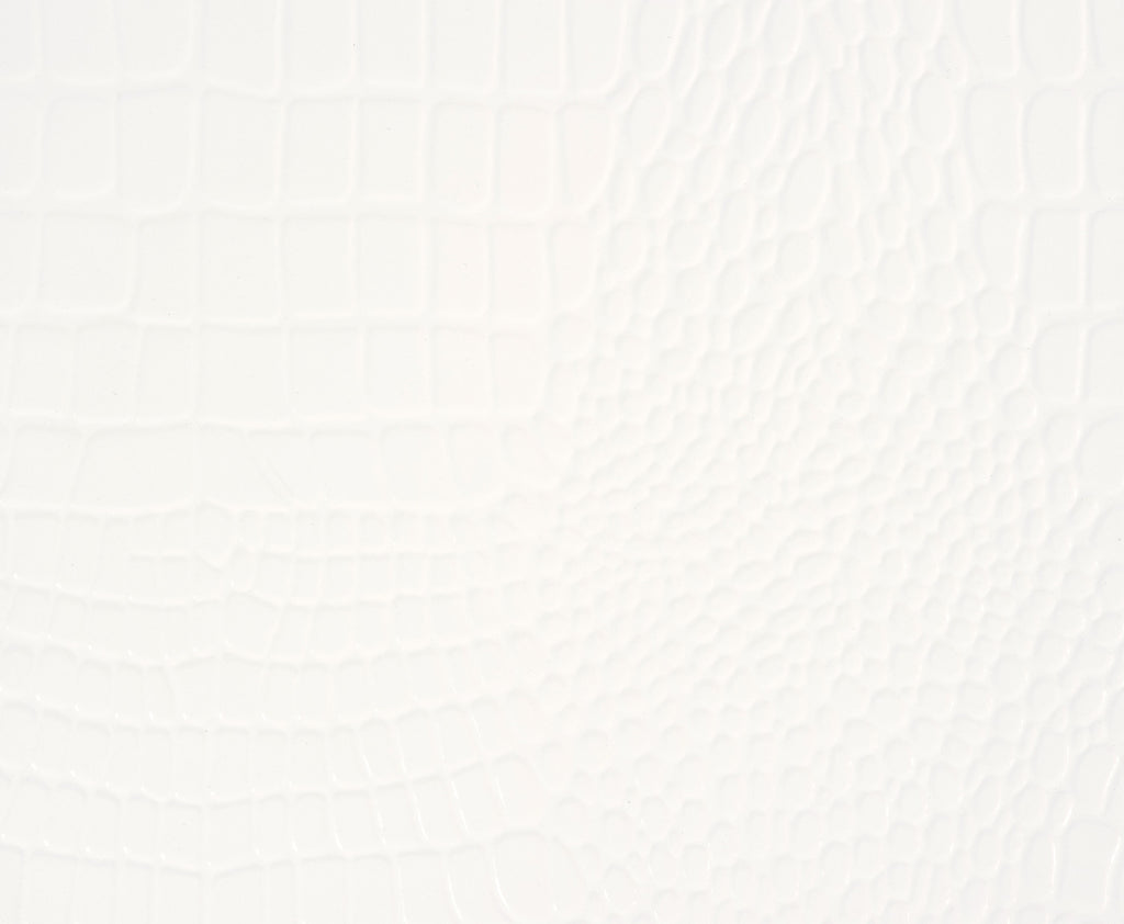 - Faux alligator embossed, textural panels with beveled mirror trim