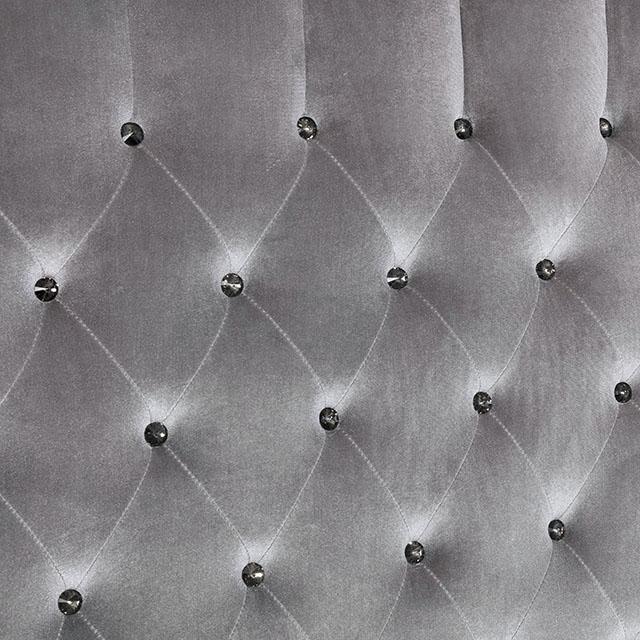 Comforting cushioned velvet-like fabric encompasses this chic bedroom set. Admire the glamorous wingback headboard as glimmering acrylic button tufts and framing nailhead trim dazzles. Run your hands over the soothing night stand and easily store essentials in its storage space. Cabriolet feet add a finishing polish as they provide unwavering support to this elegant bedroom set.