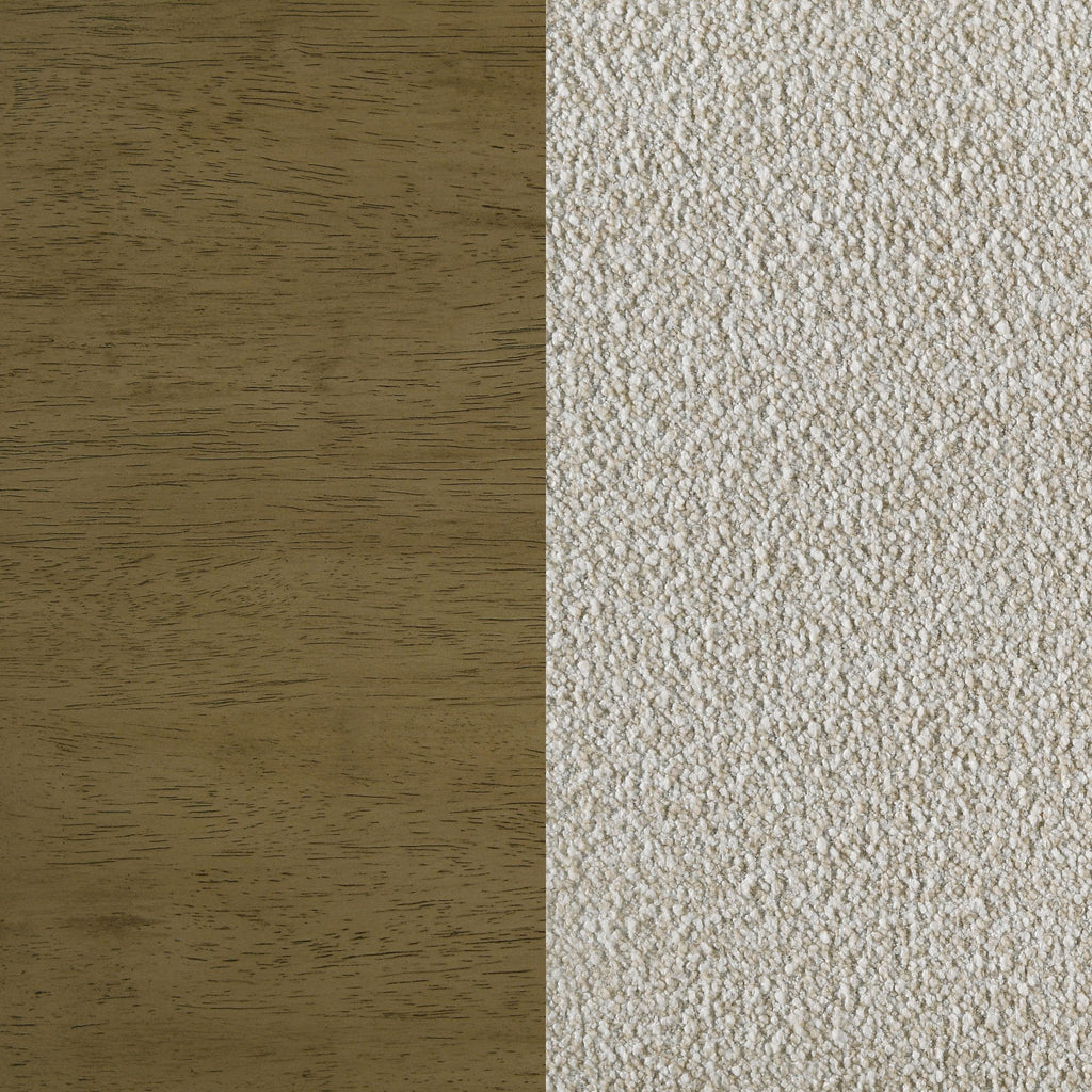 Transform your bedroom into a stylish and serene retreat with this modern bedroom set. The warm nutmeg wood finish across all pieces creates a cohesive and inviting atmosphere, while the soft, beige upholstered headboard on the bed adds a touch of luxury. The case pieces feature smooth metal extension glides for effortless functionality, and the rounded corners on all pieces contribute to a sleek, contemporary look. Matte nickel hardware provides a refined accent that complements the overall aesthetic. Crafted from solid rubberwood and engineered wood, this set combines timeless design with everyday practicality. Key Features: • Queen bedroom set in nutmeg finish enhances the modern aesthetic • Vertical channeled beige boucle upholstered headboard adds texture • Metal extension glides provide smooth drawer operation • Matte nickel hardware offers a sleek, modern accent • Crafted from solid rubberwood and engineered wood for durability