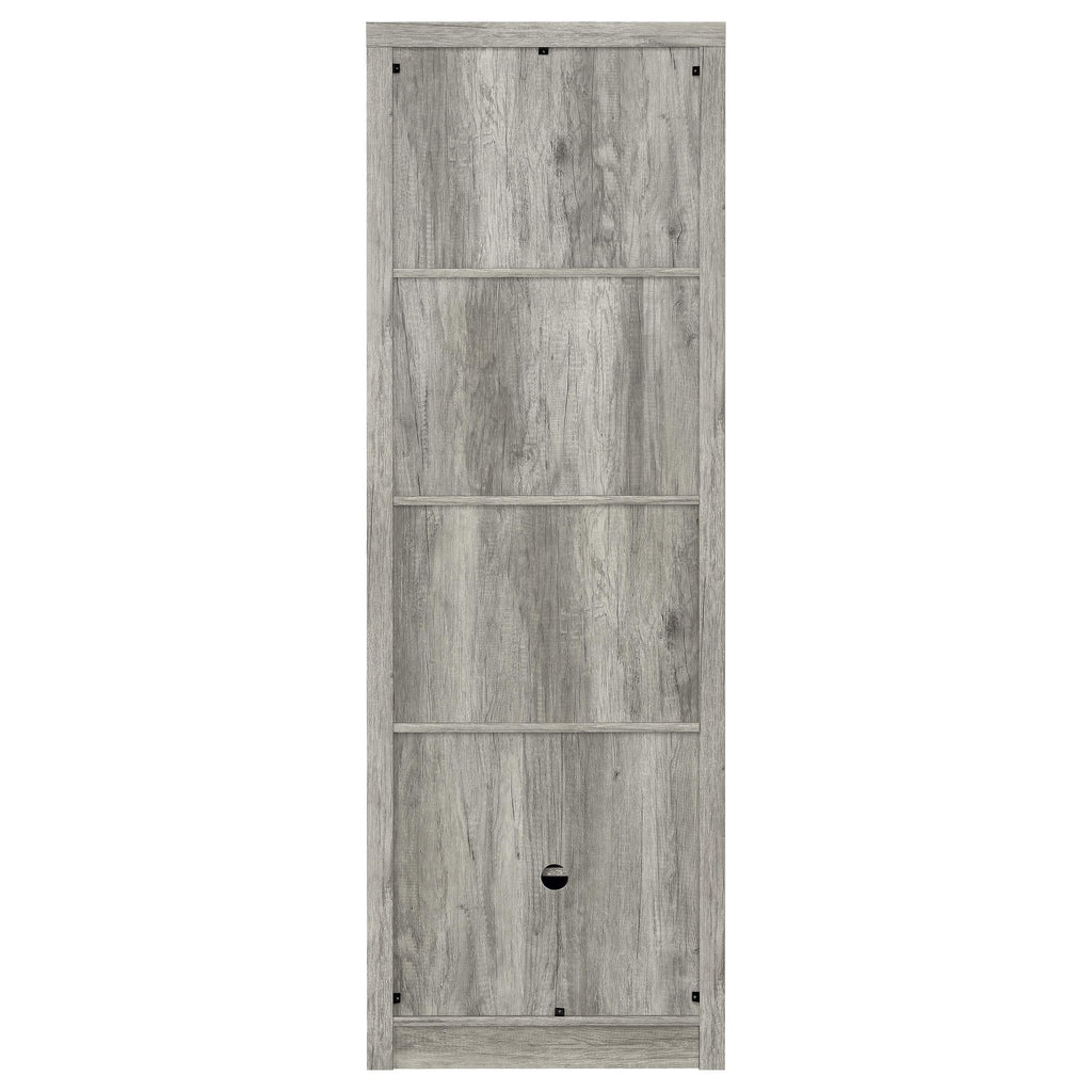 Design the entertainment mecca you've always imagined with this three-piece media center. Including a central TV stand and two media towers, the set delivers simplicity of silhouette with plenty of storage options to accommodate your needs. Gray driftwood finish laminate surfaces are durable and resistant to scratches and denting, offering impressive durability. The TV stand offers two open shelves and two drawers, each with contrasting hardware that adds a pop of dimension. The media tower each add three upper shelves and a lower cabinet, creating the perfect blend of storage and display spaces to bring personality to your welcoming living room.