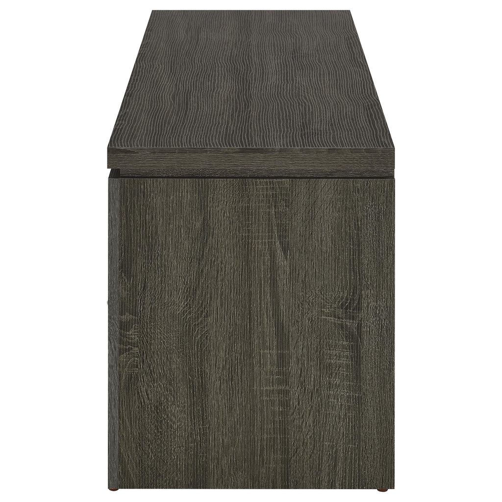 Immerse yourself in the rustic allure of our sturdy TV stand, a harmonious blend of function and aesthetics. Crafted with a rich mango finish, its character is accentuated by rough sawn distressing and layers of warm colors, infusing your space with a touch of vintage charm. Beyond its captivating design, this stand is a testament to thoughtful craftsmanship. It boasts a spacious storage compartment, flanked by two smoothly sliding drawers fitted with euro drawer glides, ensuring easy access. The bold black metal pull handles stand out, providing a striking contrast and ease of use. This TV stand is not just furniture; it's a statement of timeless beauty and functionality. Key Features: • Rich mango finish with rough sawn distressing and layers of warm colors for a vintage charm • Spacious storage compartment and two smoothly sliding drawers with euro drawer glides for easy access • Bold black metal pull handles for a striking contrast and ease of use • Sturdy construction for a testament to thoughtful craftsmanship • Harmonious blend of function and aesthetics for a statement of timeless beauty