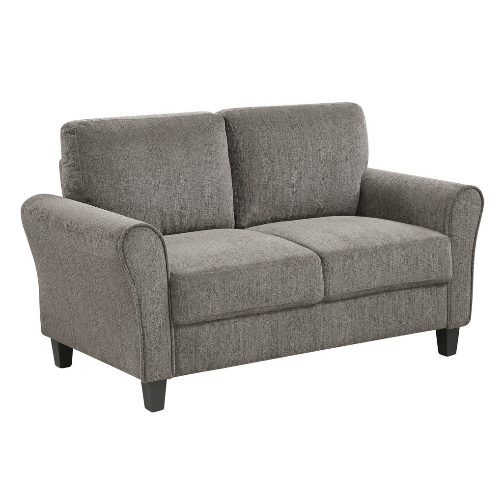 Enhance your living space with our stylish and comfortable loveseat, upholstered in a soft and inviting chenille fabric. Designed for lasting support and relaxation, this loveseat features plush foam padding over individual pocket coils, providing a comfortable and resilient seating experience for two. The sturdy solid wood and plywood frame ensures stability and durability for years to come. Its classic design is accentuated by elegant rolled arms and exposed feet with a sleek black faux wood finish, adding a touch of sophistication to any room. While some assembly is required, the result is a beautiful and cozy loveseat that will be a welcome addition to your home.