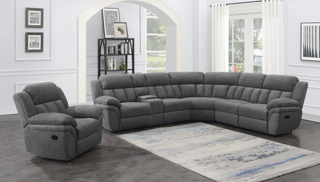 Sink into the cozy comfort of this manual glider recliner, upholstered in soft charcoal fabric. Designed with wide pillow arms and a plush backrest, this recliner features supportive pocket coil seating and a cool gel memory foam layer to enhance breathability and long-lasting relaxation. Its smooth gliding motion and inviting profile make it the perfect addition to any casual living space or entertainment room. Key Features: • Manual glider recliner offers smooth motion and effortless relaxation • Upholstered in durable charcoal fabric for a soft, modern feel • Wide pillow arms and plush headrest enhance comfort and support • Cool gel memory foam topper keeps the seat breathable and cool • Built with pocket coil seating for long-lasting support and durability • Ideal for casual living rooms, dens, or entertainment lounges