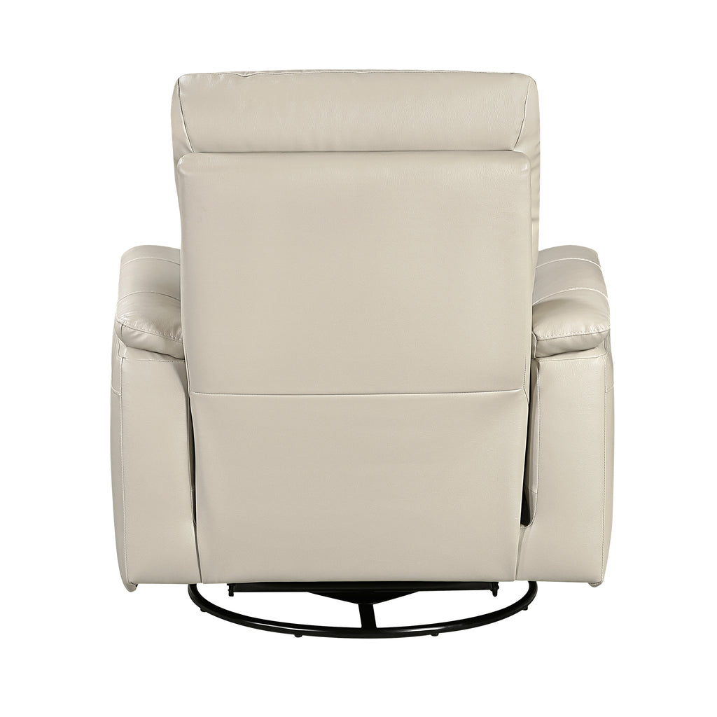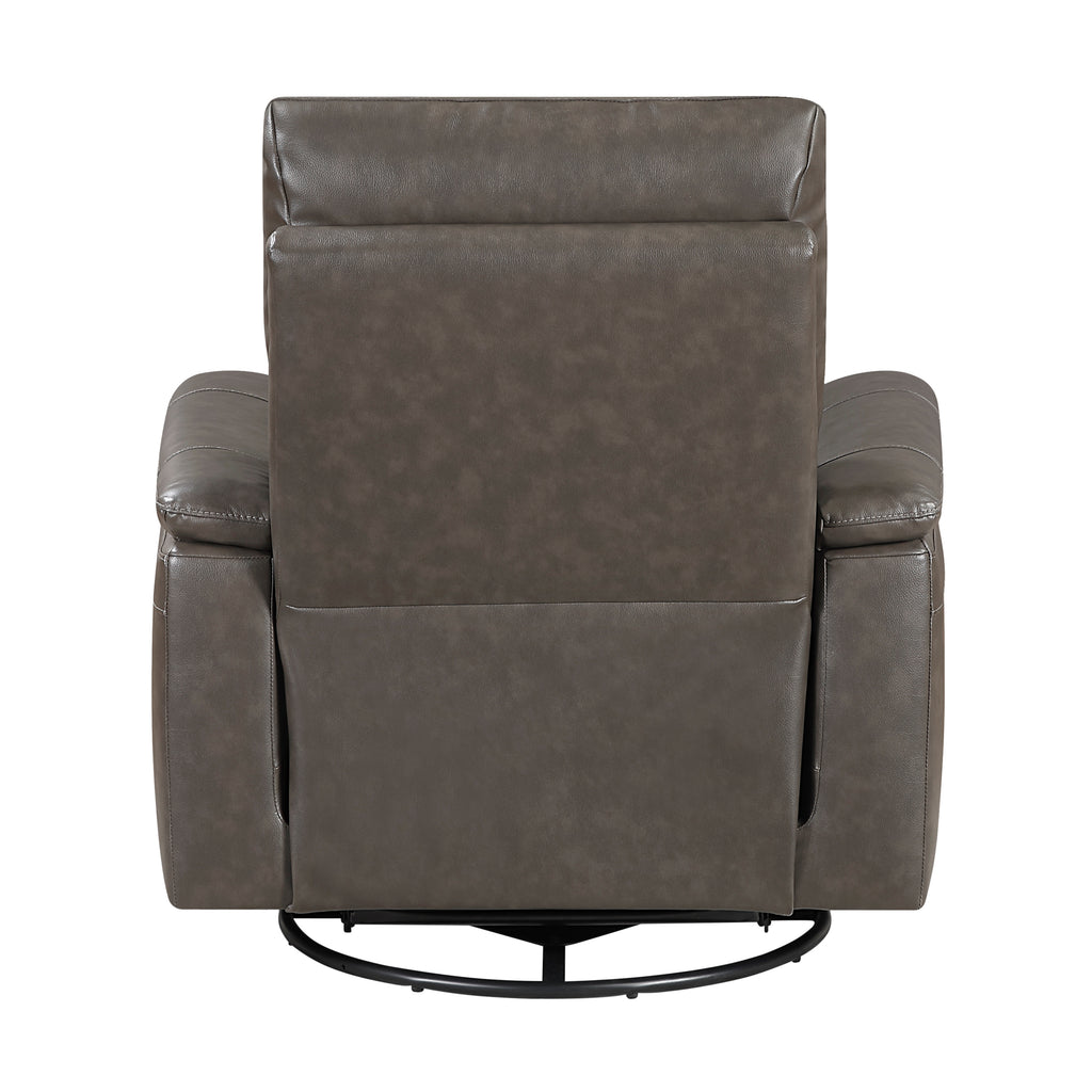 Indulge in luxurious comfort and versatile movement with this premium leather recliner, designed for ultimate relaxation. Experience the opulent feel of top-grain leather where your body touches, complemented by durable faux leather on other areas, creating a sophisticated aesthetic. Sink into high-density foam padding over supportive pocket coils, while the convenient manual tab-pull reclining motion allows for effortless adjustments. With its gentle gliding motion and 360-degree swivel capability, this recliner offers unparalleled flexibility, making it the perfect sanctuary for unwinding after a long day.