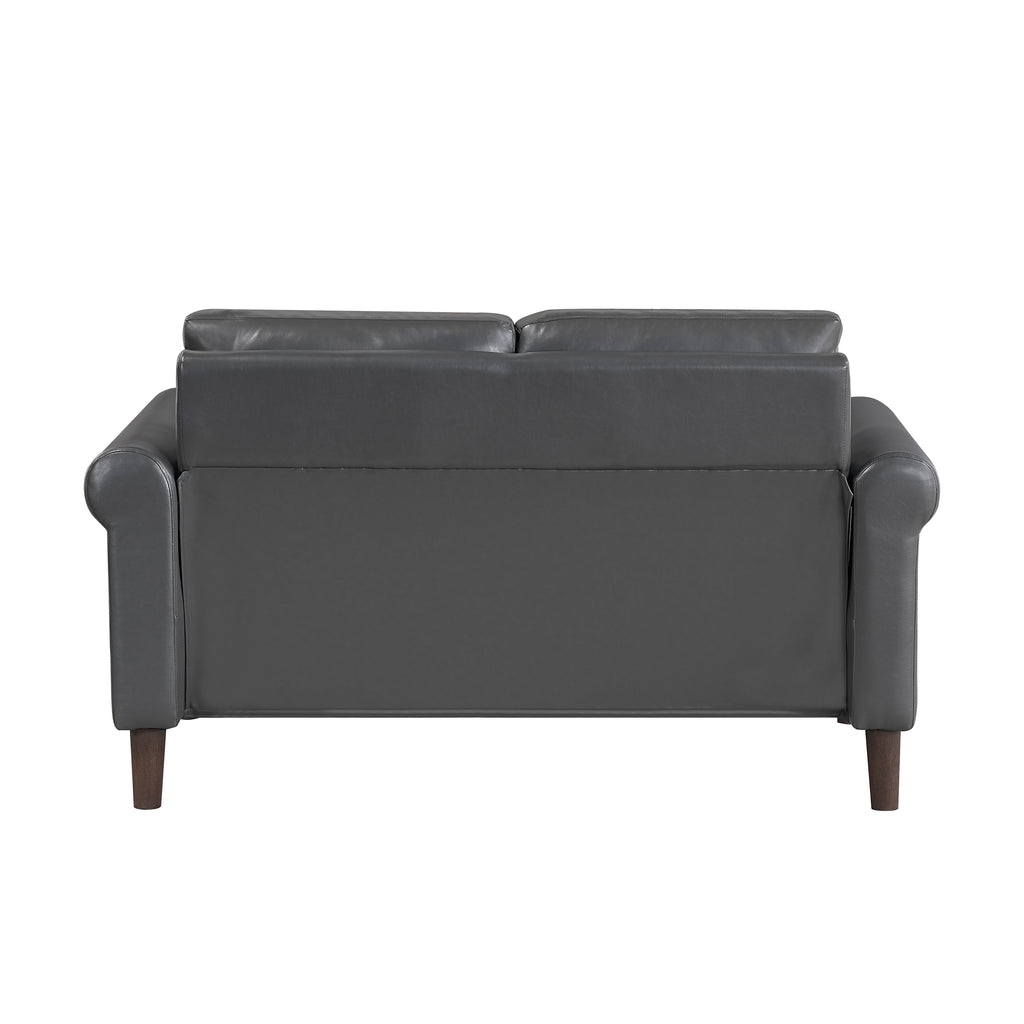 Enhance your space with this mid-century modern faux leather loveseat, offering a perfect blend of classic sophistication and contemporary comfort. Featuring rolled arms, plush seat cushions, and a sleek silhouette, this 2-seater sofa adds a refined touch to any setting. The durable faux leather upholstery provides a luxurious look with easy maintenance, while the sturdy wooden frame and tapered legs ensure long-lasting stability. Whether placed in a living room, apartment, office, or lounge area, this loveseat delivers comfortable seating with timeless elegance, making it an ideal centerpiece for relaxation and entertaining.