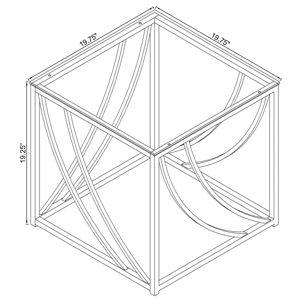 This coffee table set, including a cocktail table and end table, blends sleek modern design with practical functionality. Both pieces feature clear tempered glass tops and electroplated polished chrome frames. The curved metal accents add a contemporary, elegant touch to the design. Built with sturdy metal construction, this set is durable and stylish, making it a perfect addition to any living room or seating area.