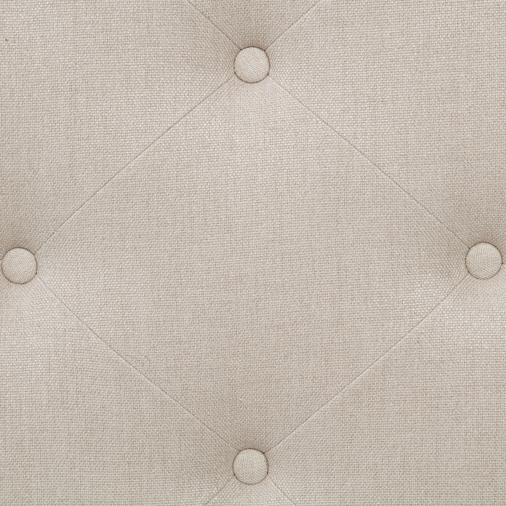 Traditional grace meets modern versatility in this upholstered accent bench. A softly tailored seat with button tufting lends texture and charm, while turned wooden legs offer a grounded elegance. The elongated frame invites moments of pause at the foot of a bed, beside an entryway, or in a quiet corner. With plush cushioning and a gently refined silhouette, this bench blends function and romance for curated spaces that value comfort and form. Key Features: • Accent bench with elongated profile for entryways, living areas, or bedroom seating • Latte fabric upholstery with soft button tufting adds visual depth and texture • Turned wood legs in black finish offer a refined traditional detail to the base • Plush cushioned top provides comfort for seating, styling, or dressing use • Crafted from fabric, foam, engineered wood, solid wood, and reinforced plywood • Neutral tone and classic silhouette integrate well across multiple interior styles