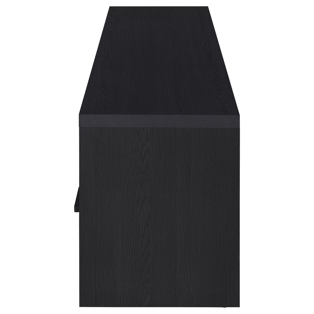 This 70-inch modern TV console entertainment center combines style and function with a durable engineered wood build and eco-friendly paper laminate veneer. The scratch-resistant surface ensures long-lasting durability, while its clean design features two doors for concealed storage, an open cubby for devices, and a single drawer for organization. With ample space to support large TVs up to 75 inches, this media console offers a practical and sleek solution for your entertainment setup.