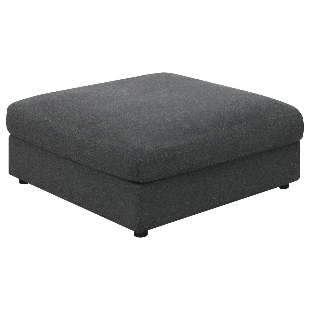 Covered in a linen-like fabric all around, this super comfy five-piece sectional offers all the seating you need in an open concept living room or entertainment area. Designed with two armless chairs, two corner chairs and a single oversized ottoman, this contemporary modular sectional offers reversible back pillows and jacquard accent pillows that you can really sink into. Black feet peer from beneath, offering a slight elevation for rugs and other flooring. With an L-shape design, this sectional works in a variety of room dimensions. A spacious ottoman also doubles as a coffee table, keeping a tray of refreshments and snacks when hosting guests. Key Features: • Experience ultimate comfort with this fashionable sectional • Modular construction allows you to easily build the perfect seating area for your space • Feather blend seat and back cushions for the best seat experience • Accent pillows in a soft jacquard are included • All cushions are reversible making it easy to clean and maintain